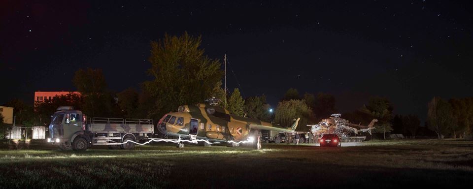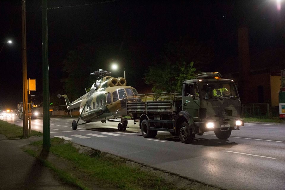 Míg a város aludt, az éjszaka folyamán átszállítottak három helikoptert (MI9, MI24 (Csőrike), MI8) a helikopterbázisról a RepTárba.