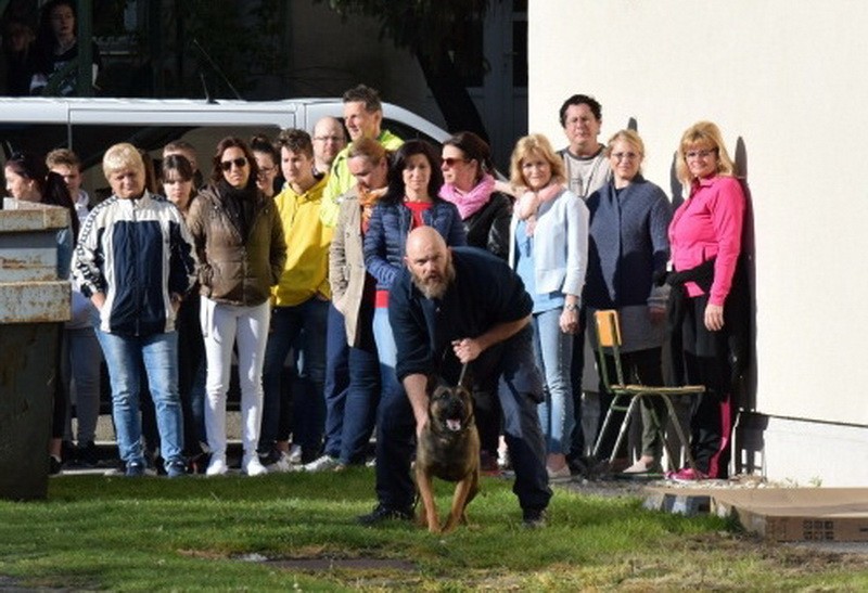 A rendezvényt nagy érdeklődéssel kísért rendőrkutyás bemutató indította, melyen bepillantást nyerhettek a szolgálati rendőrkutya munkájába. A rendőrök négylábú segítői a fegyelmezett parancsvégrehajtás után, különböző szituációs gyakorlatokban bizonyították tudásukat.