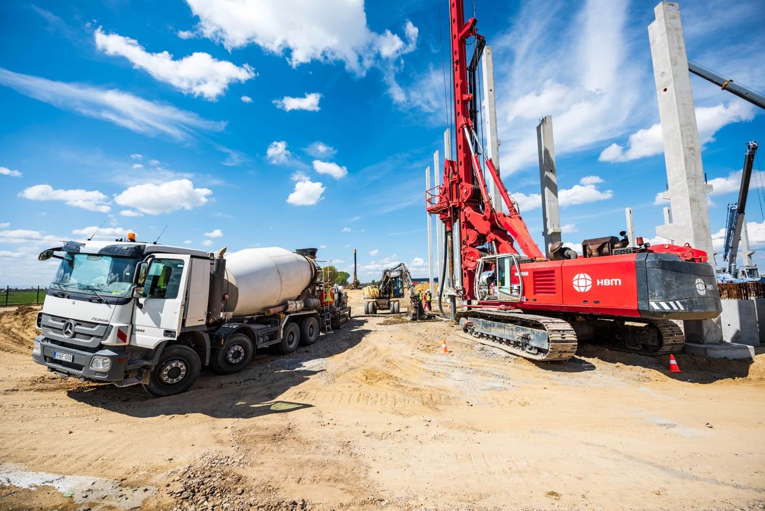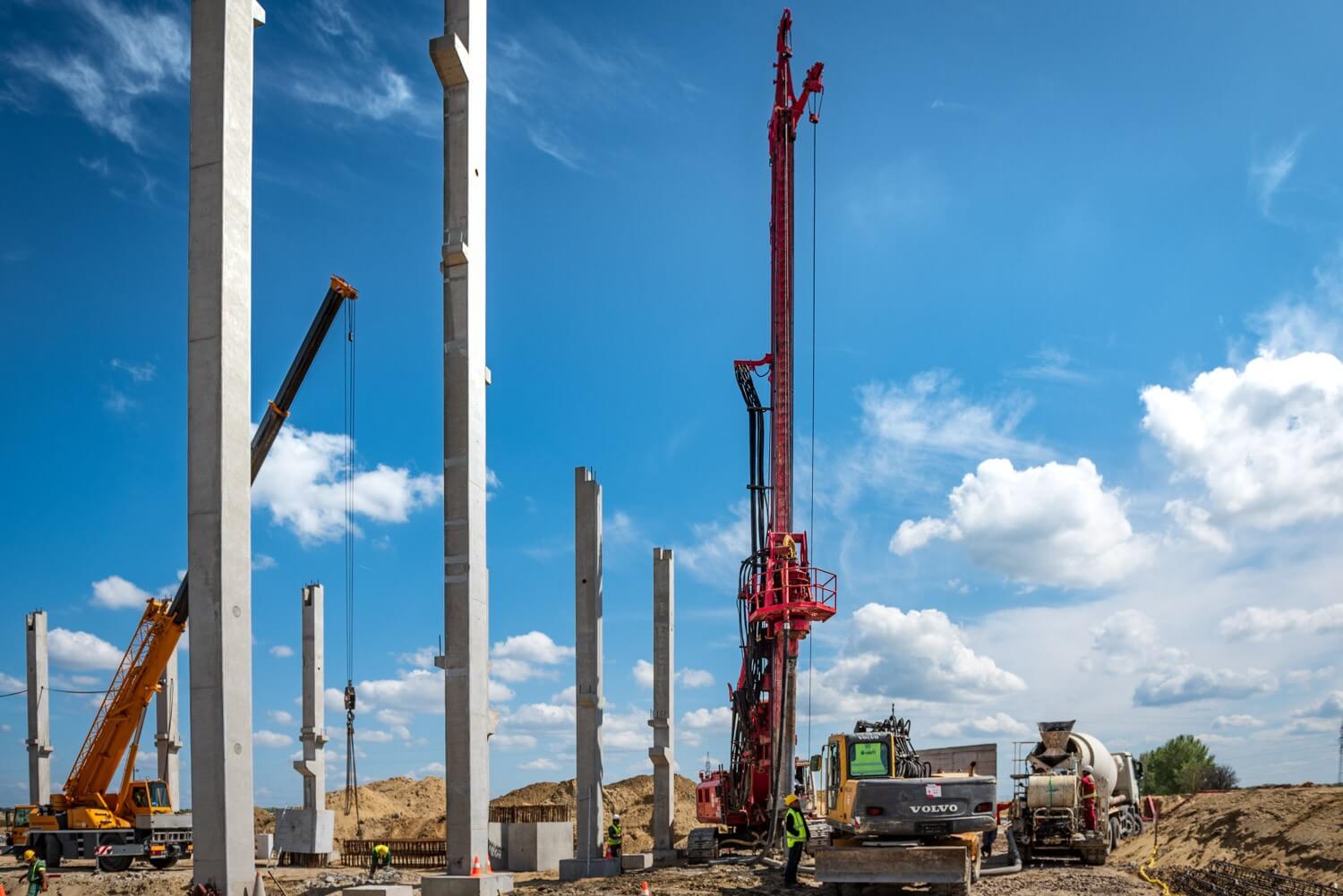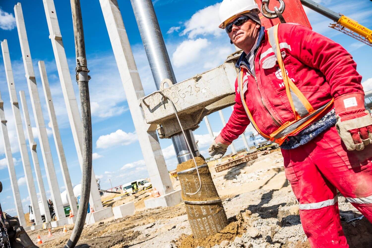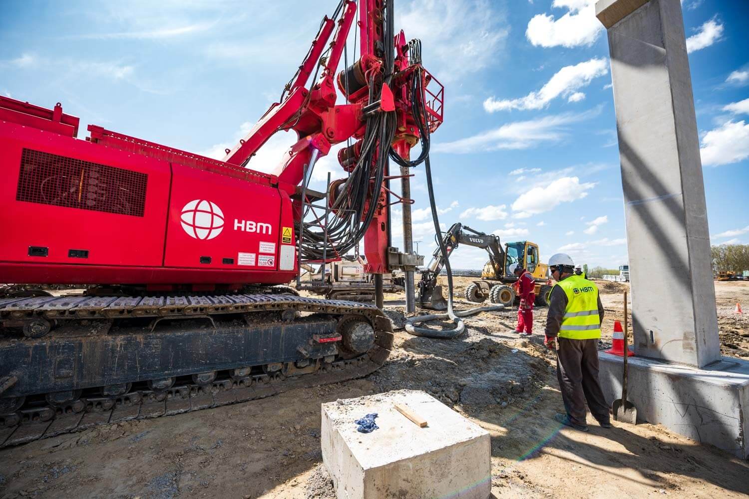 Az első munkafázisban a cölöpözést a HBM a francia anyacége által kifejlesztett Screwsol talajszorításos technologiával végezte el. A főmérnök elmondta: ez a megoldás abban különbözik a hagyományos talajkiszorításos cölöpöktől, hogy egy speciális vágókéssel felszerelt fúrófejjel dolgozzák be a betont a talajba. „A fúrószár forgatás mellettivisszahúzása során ez a vágókés belevág a talajba egy spirált” – mutatott rá, majd hozzátette: ennek következtébennagyobb teherbírás érhető el, mint a hagyományos cölöpözési megoldásoknál.