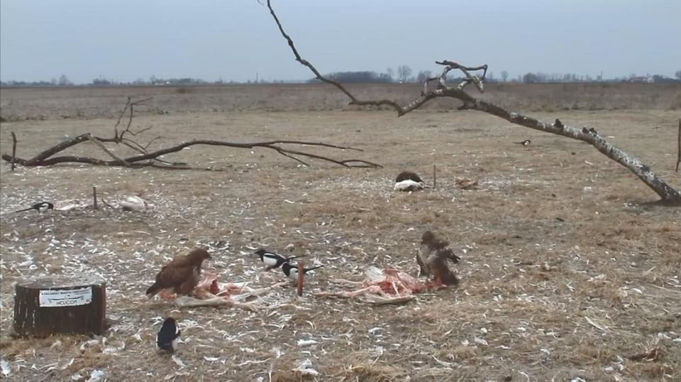 Az eddigi szokatlanul enyhe tél miatt még csak nem régen kezdődött el az etetés, de máris sok madárfaj látogatja. Legelőször a szarkák, dolmányos varjak, illetve hollók jelentek meg, gyakran több tucatnyi mennyiségben. Az egerészölyvek sem tétováztak sokáig, miután látták, hogy a „lármás népség” birtokba vette az etetőhelyet. Eddigi megfigyeléseik szerint néhány öreg parlagi sas is látogatást tett az etetőtéren, ami meglehetősen ritka jelenség. Szerencsére, fiatal és átszíneződő parlagi és réti sasok is rátaláltak már a könnyű zsákmányt ígérő területre, hiszen ezek a madarak keresztül-kasul repülik a Kárpát-medencét táplálék után kutatva. Erre minden esélyük megvan, hiszen a sasok a nagy madármozgást már igen messziről is észlelni tudják.