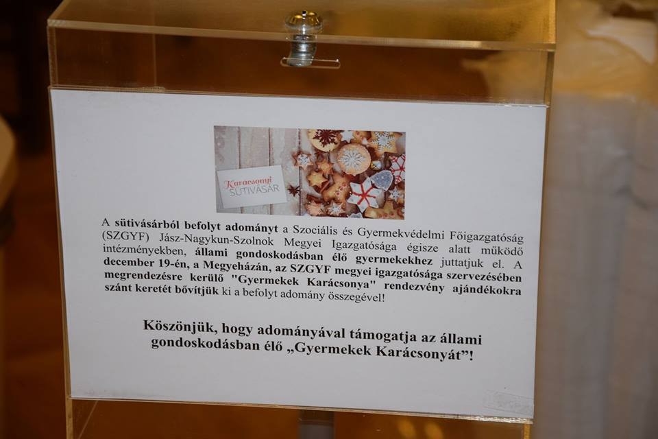 Első alkalommal rendezett közös jótékonysági süteményvásárt a Jász-Nagykun-Szolnok Megyei Önkormányzat és Hivatala, valamint a JNSZ Megyei Kormányhivatal, ám máris nagyon sok jótékony embert mozgatott meg a rendezvény. Egyrészt a hivatalok munkatársai jó szívvel készítették a finom sütemények elképesztő mennyiségben, másrészt nagyon sokan jöttek adományozni.
