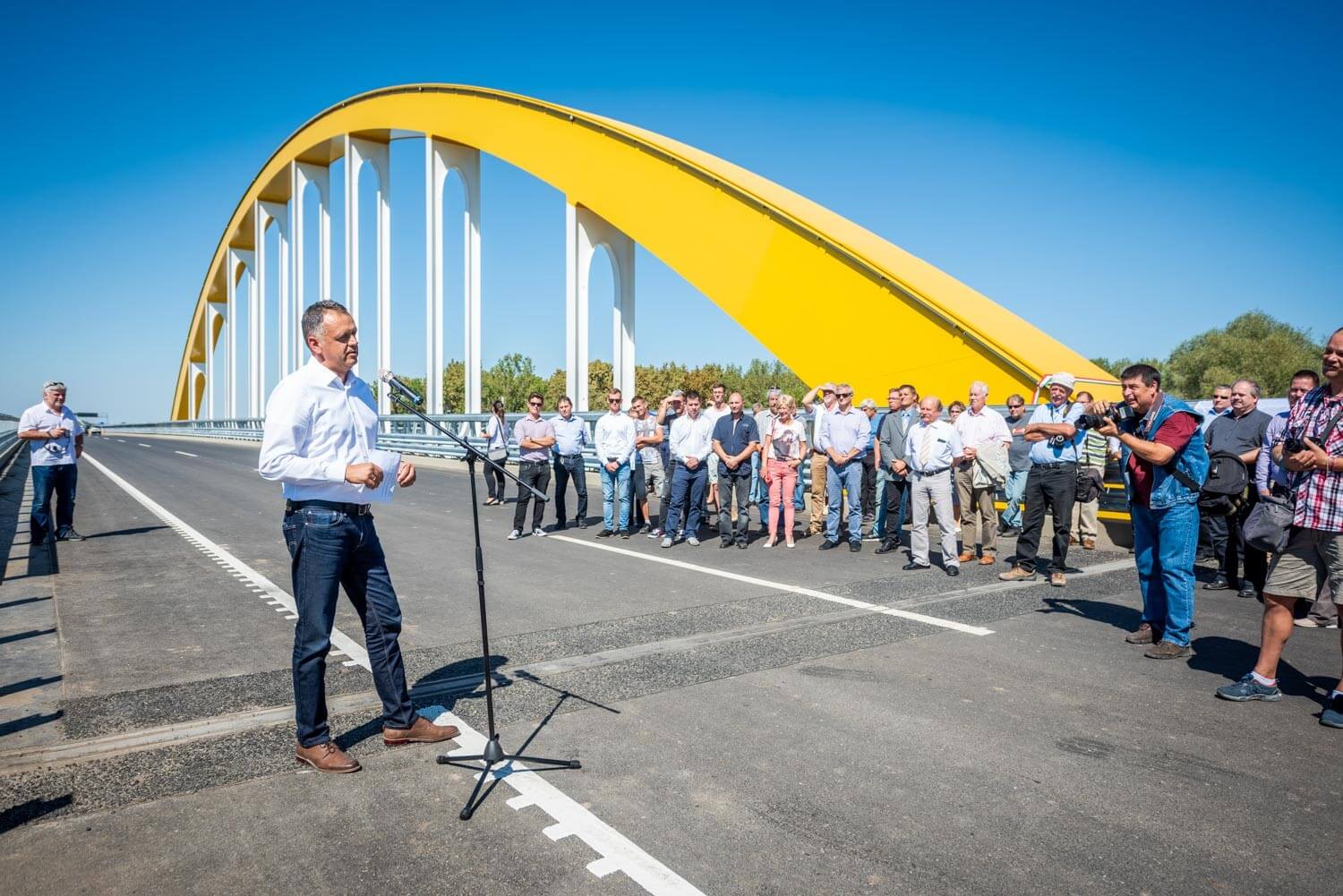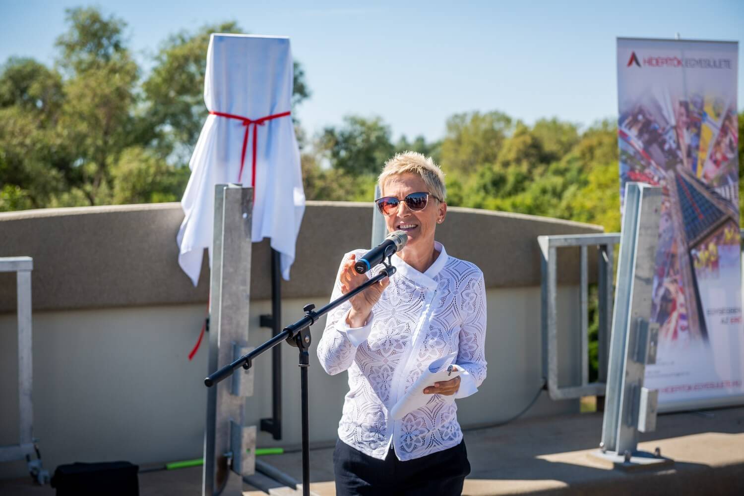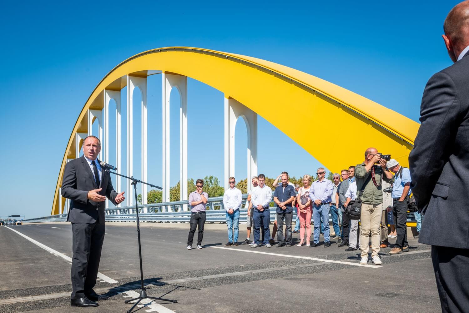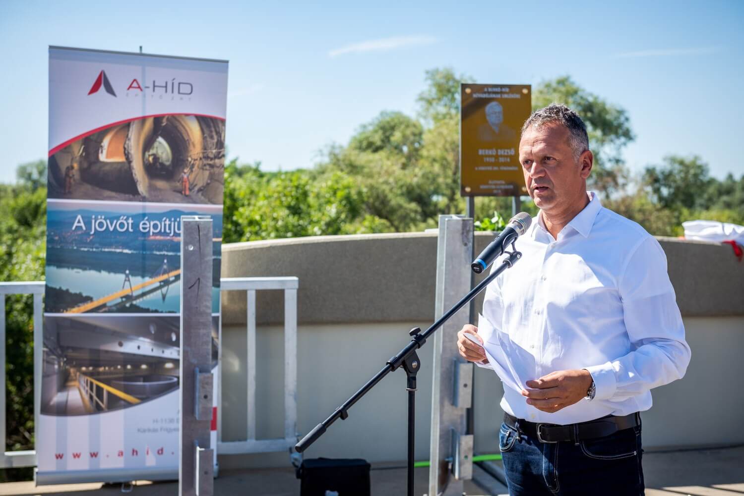 Az első felszólalások után ünnepélyesen leleplezték a híd névadójáról megemlékező táblát, ezt követően pedig Sal László, az A-Híd Zrt. vezérigazgatója szólalt fel.