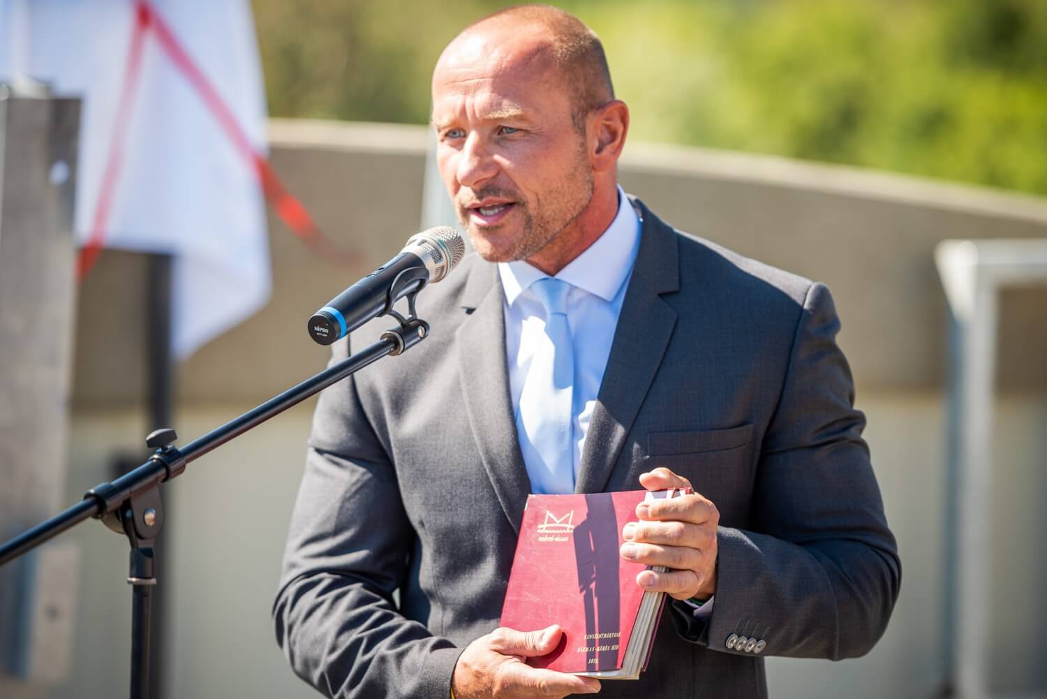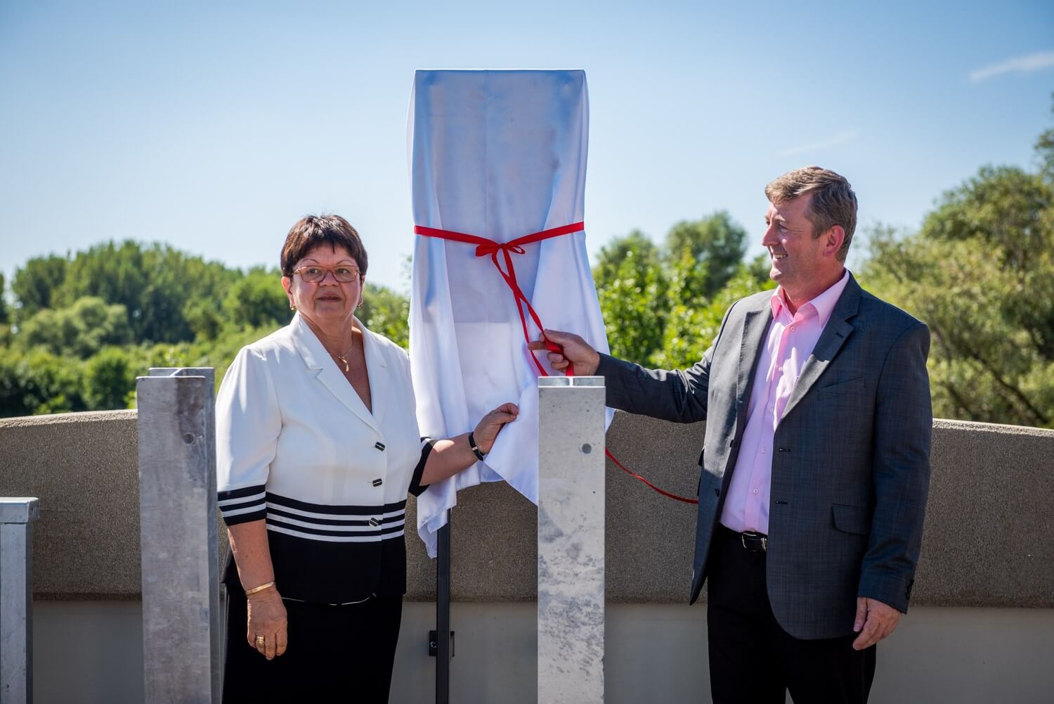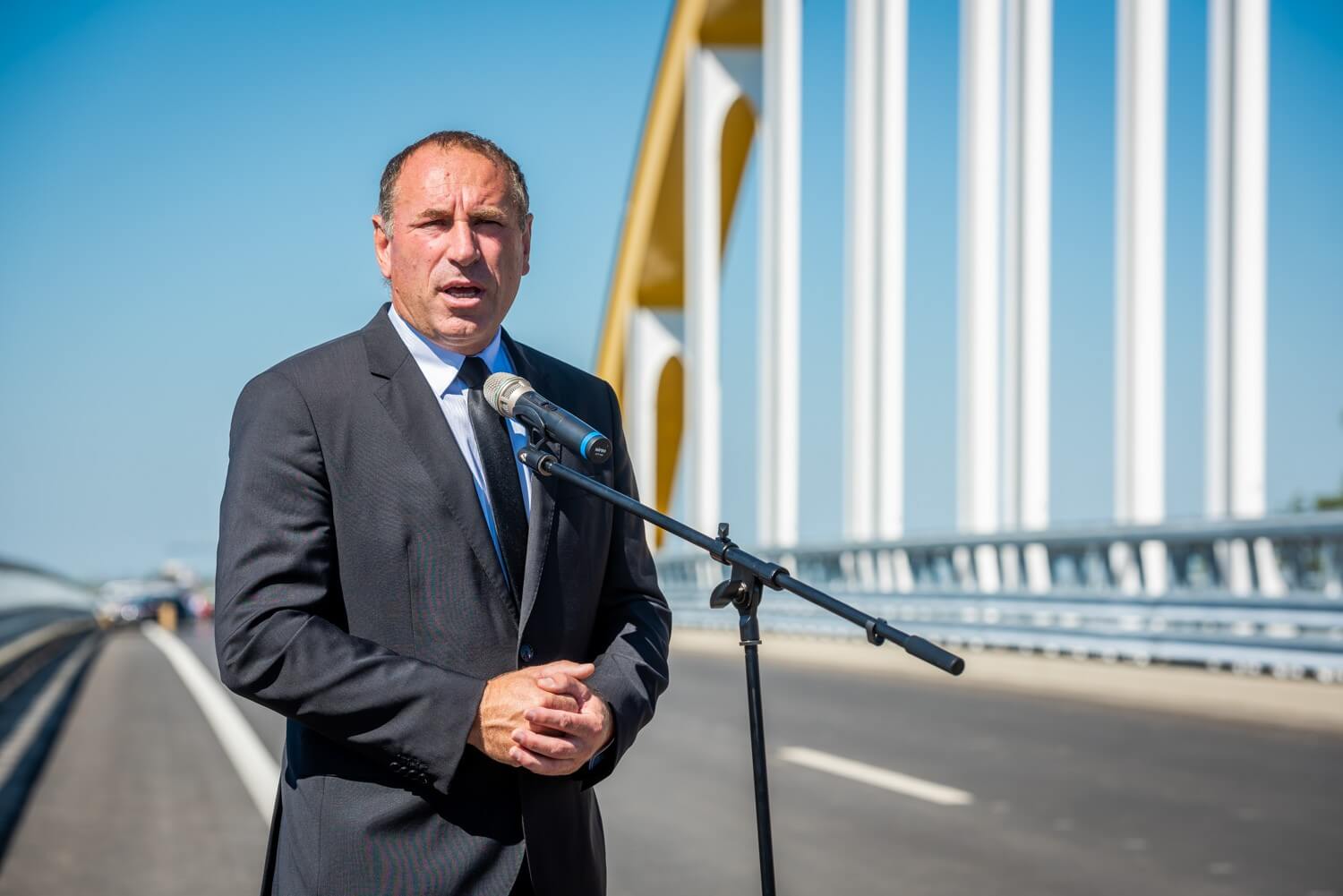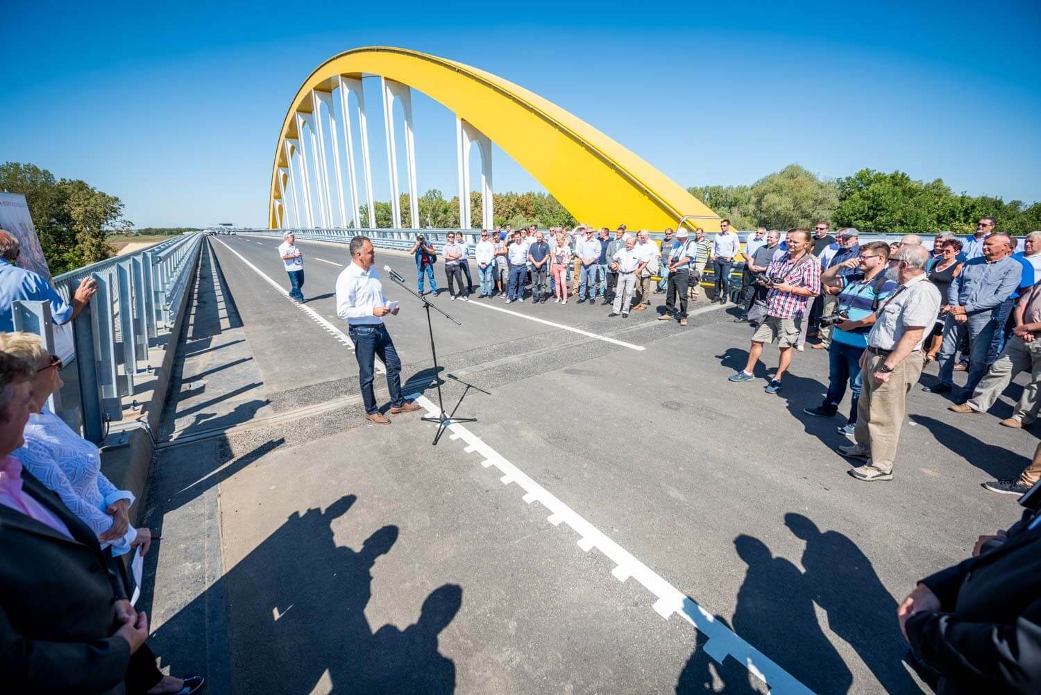 Az első felszólalások után ünnepélyesen leleplezték a híd névadójáról megemlékező táblát, ezt követően pedig Sal László, az A-Híd Zrt. vezérigazgatója szólalt fel.