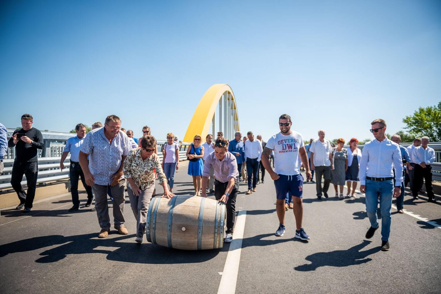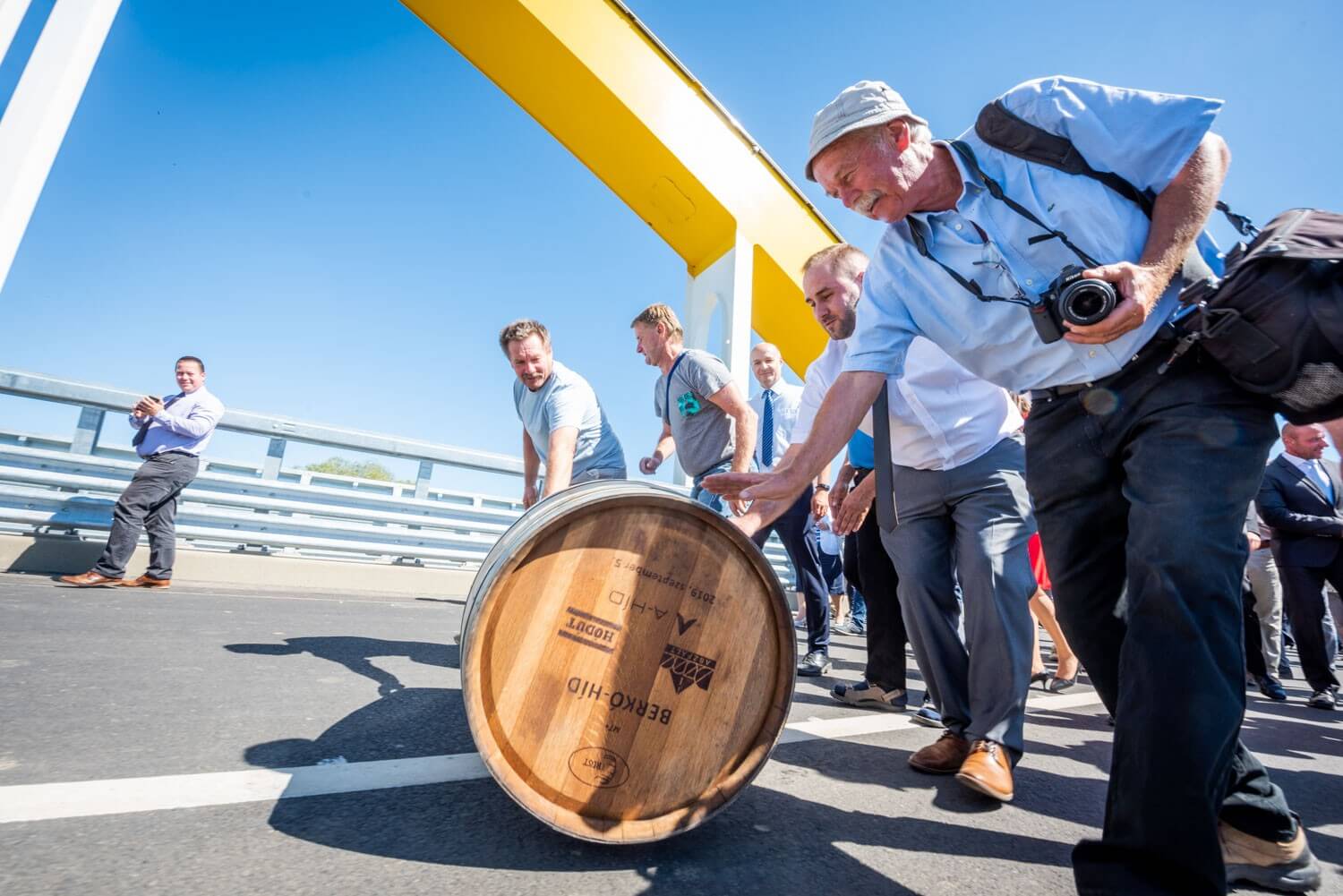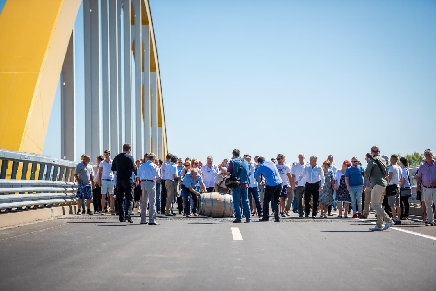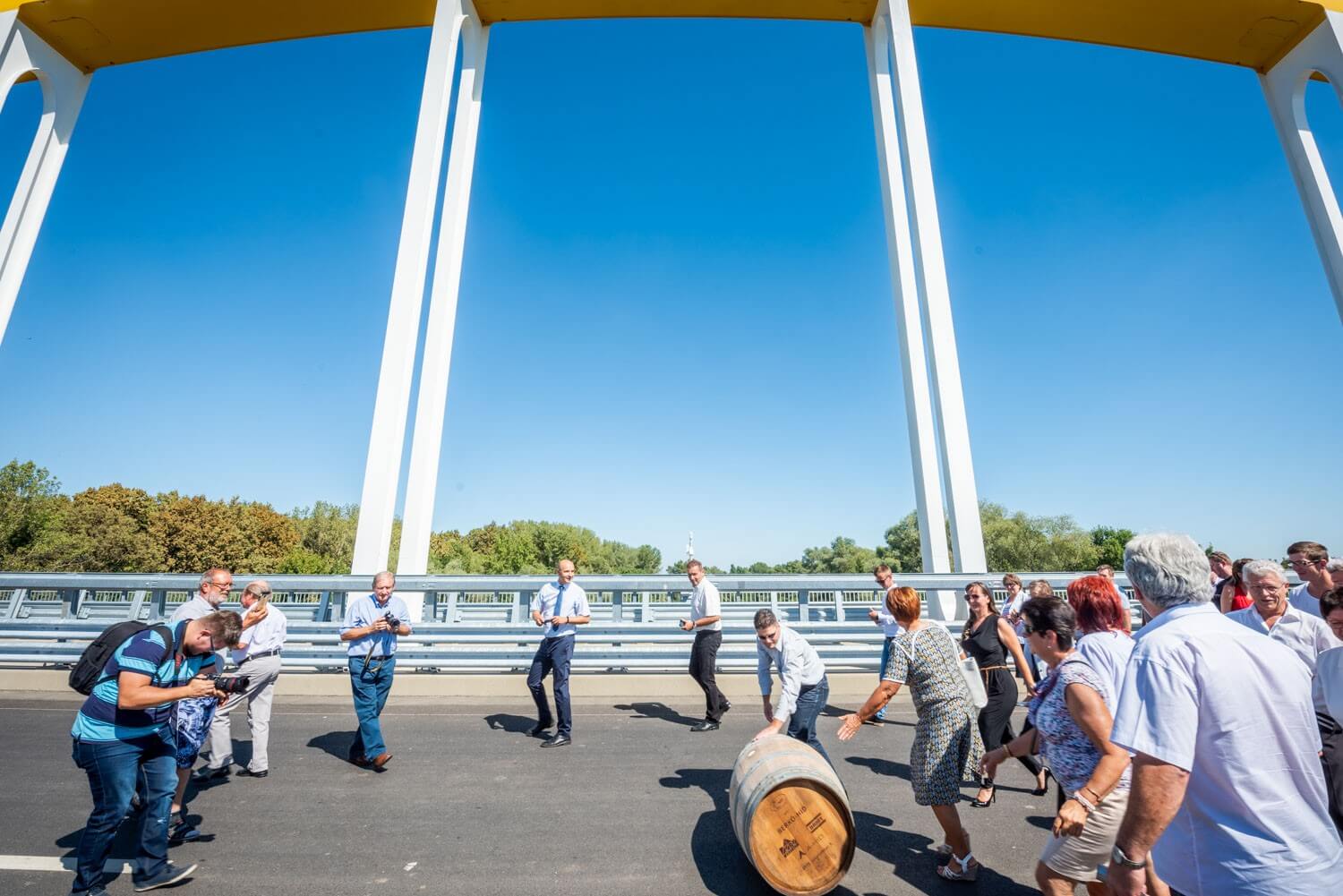Megtartották a hordógurítási ünnepséget az új gyorsforgalmi útszakasz közel fél kilométer hosszú átkelőjén, melyet a Hídépítő Vállalat és a Híd-csoport kiváló szakemberéről, Berkó Dezsőről neveztek el.