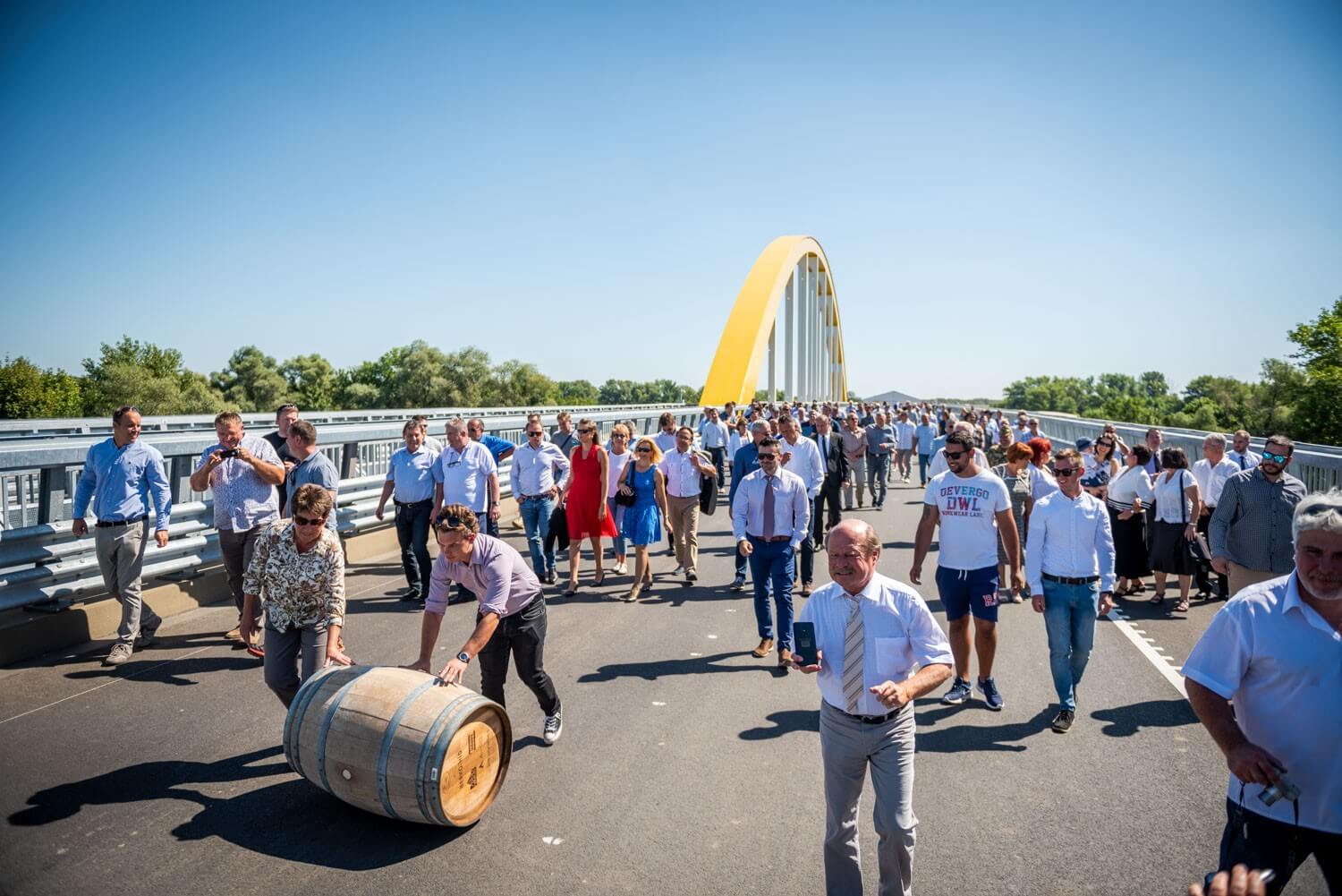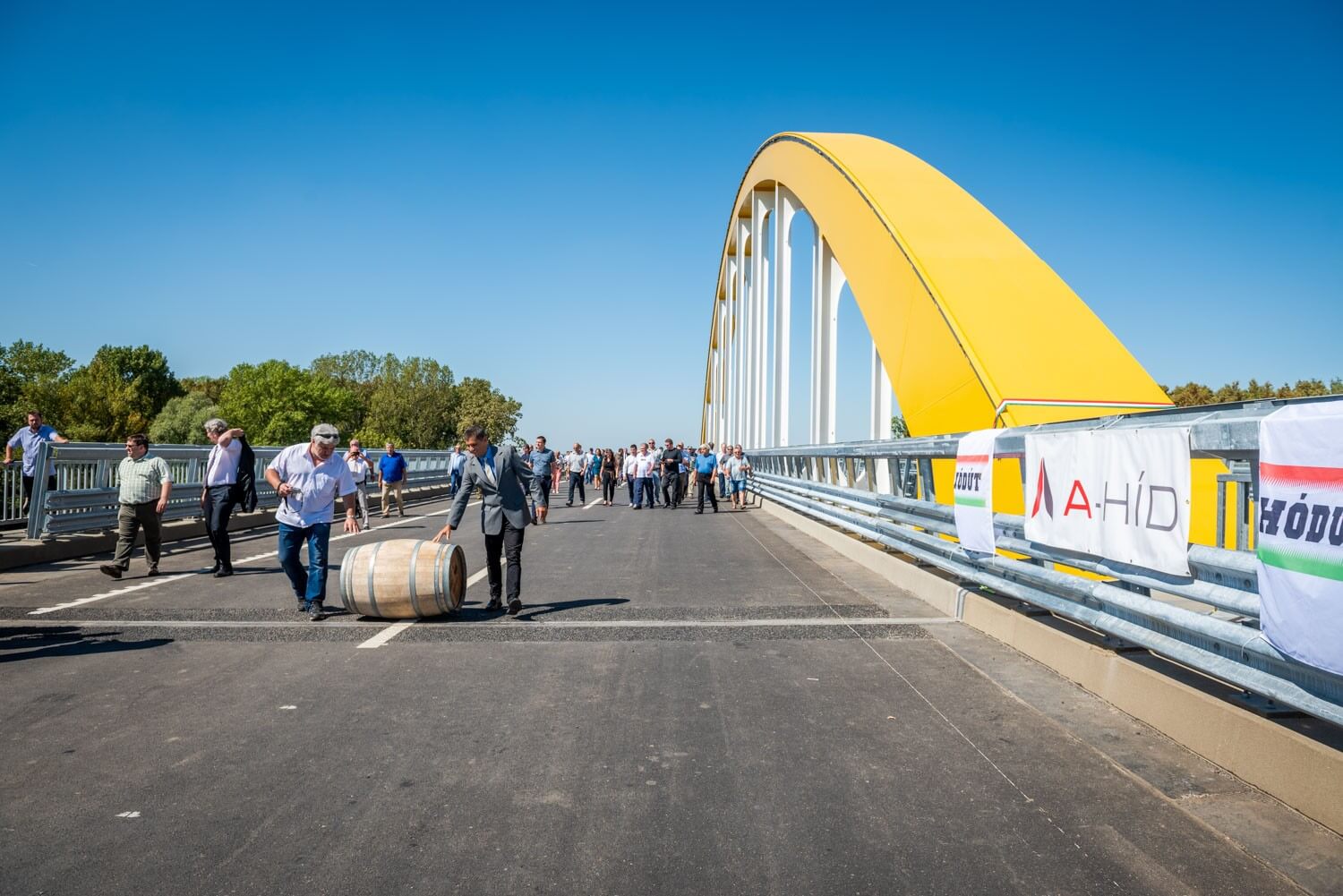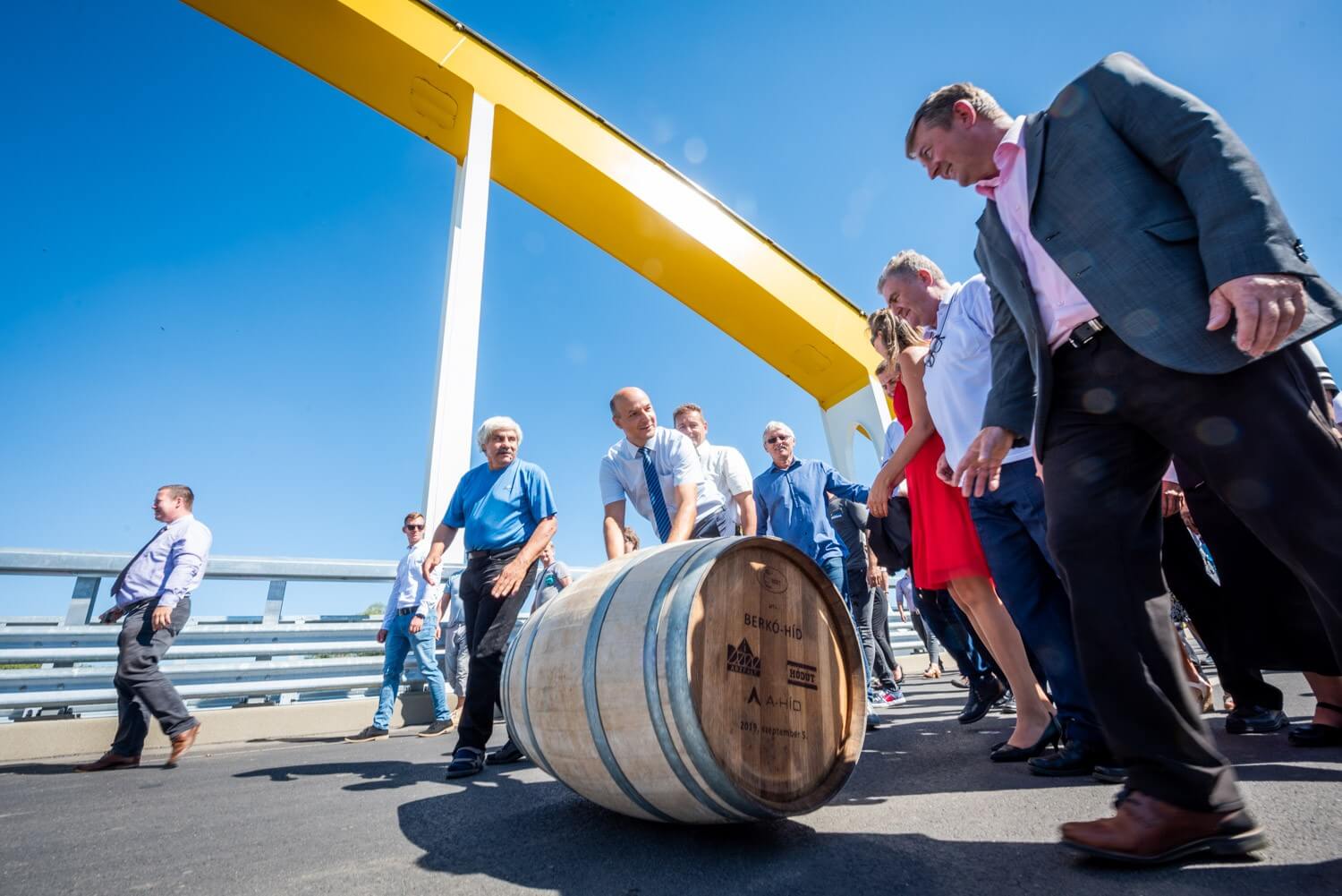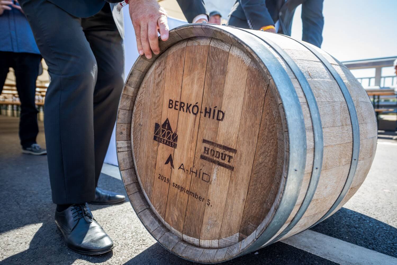 Megtartották a hordógurítási ünnepséget az új gyorsforgalmi útszakasz közel fél kilométer hosszú átkelőjén, melyet a Hídépítő Vállalat és a Híd-csoport kiváló szakemberéről, Berkó Dezsőről neveztek el.