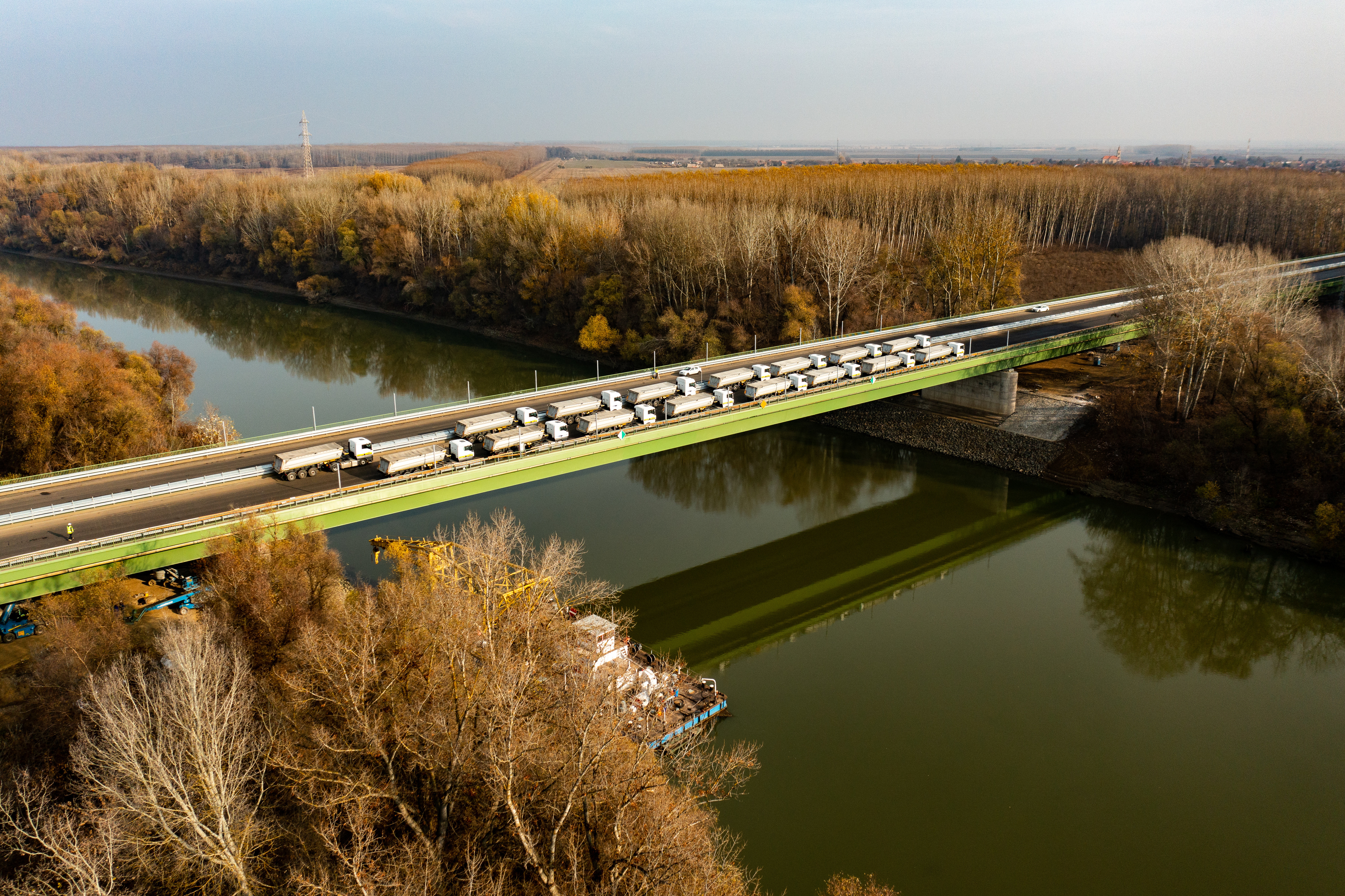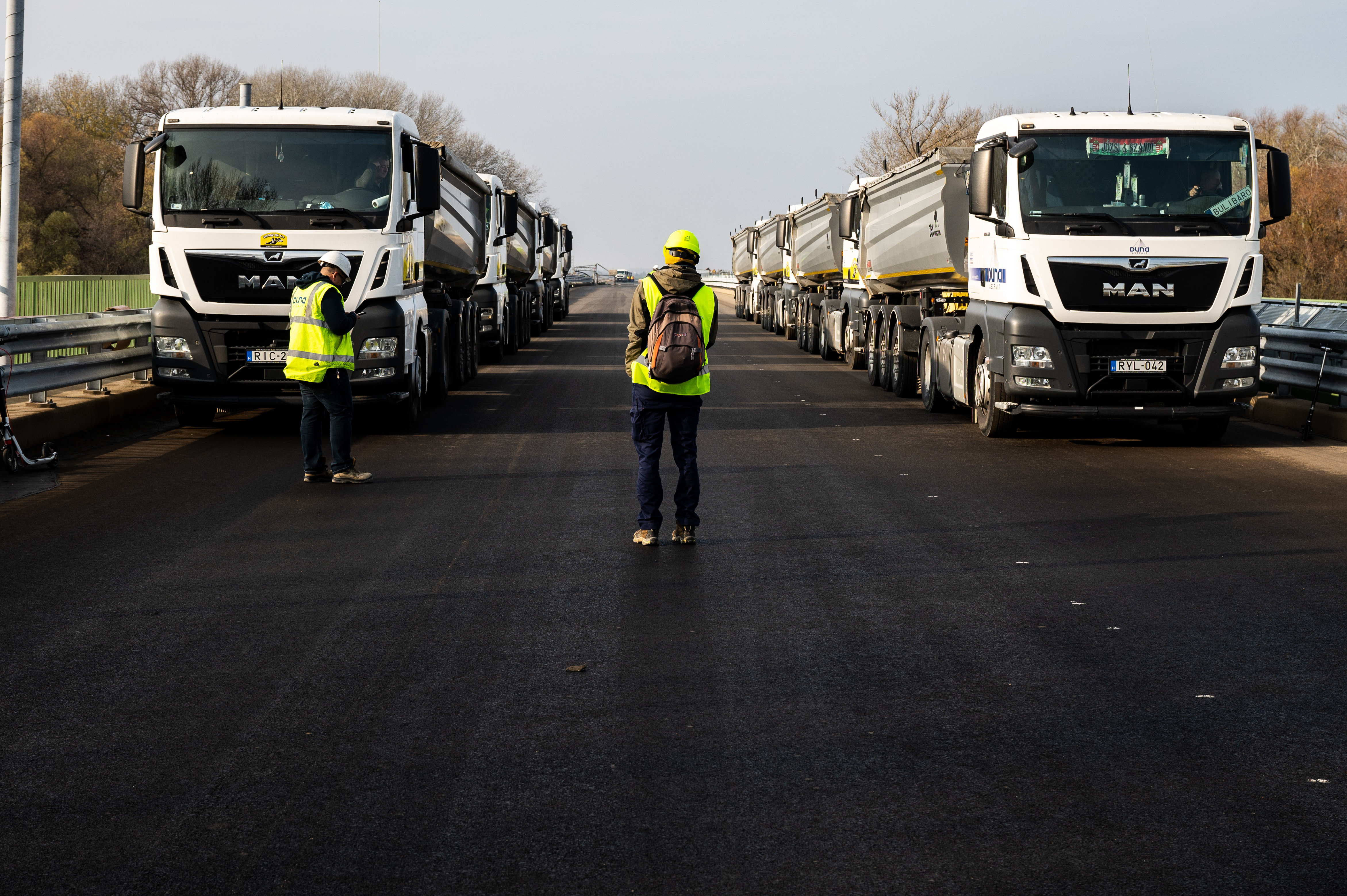 Sikeresen lezajlott a NIF Zrt. beruházásában és a Duna Aszfalt Zrt. generálkivitelezésével megvalósuló Szapáry-híd próbaterhelése.