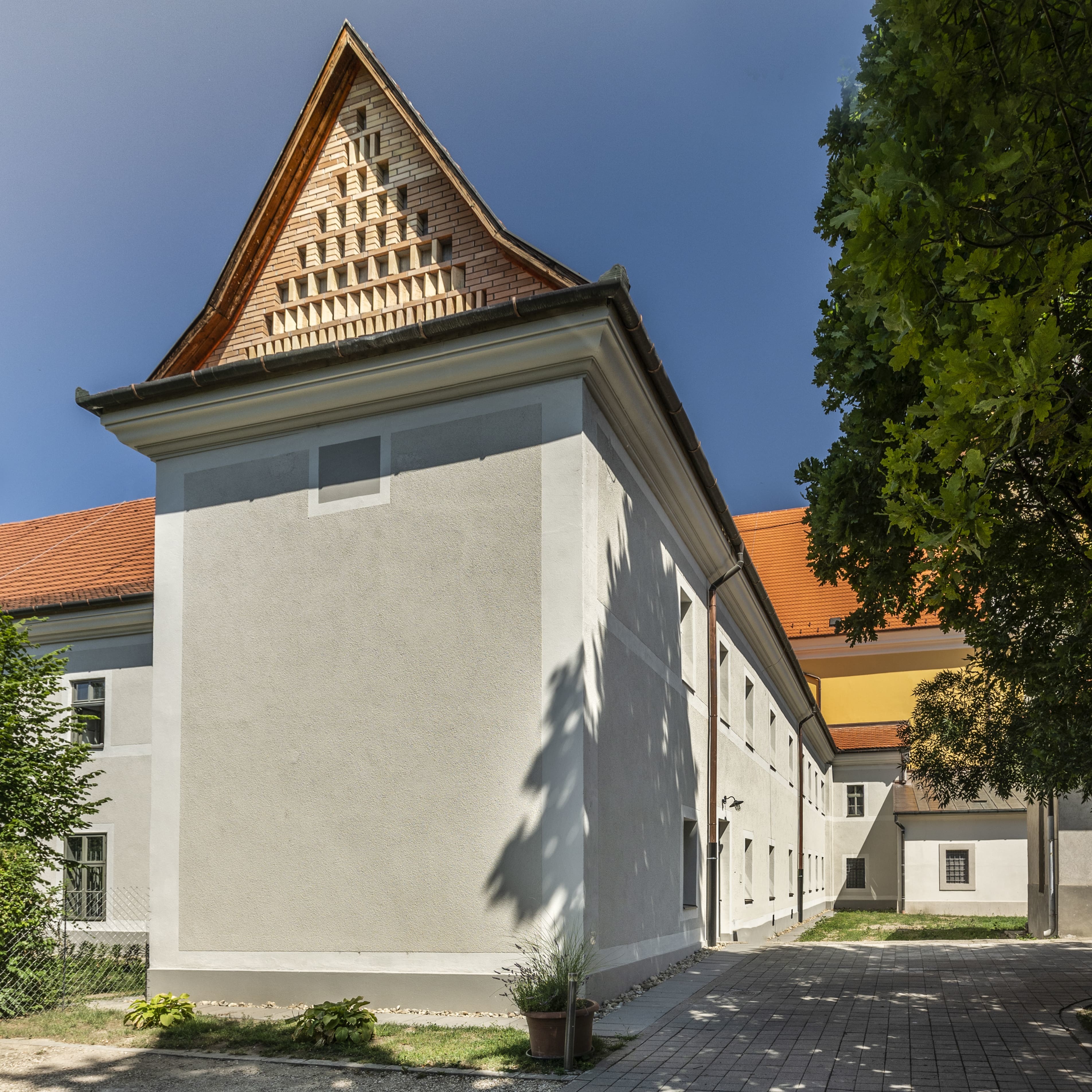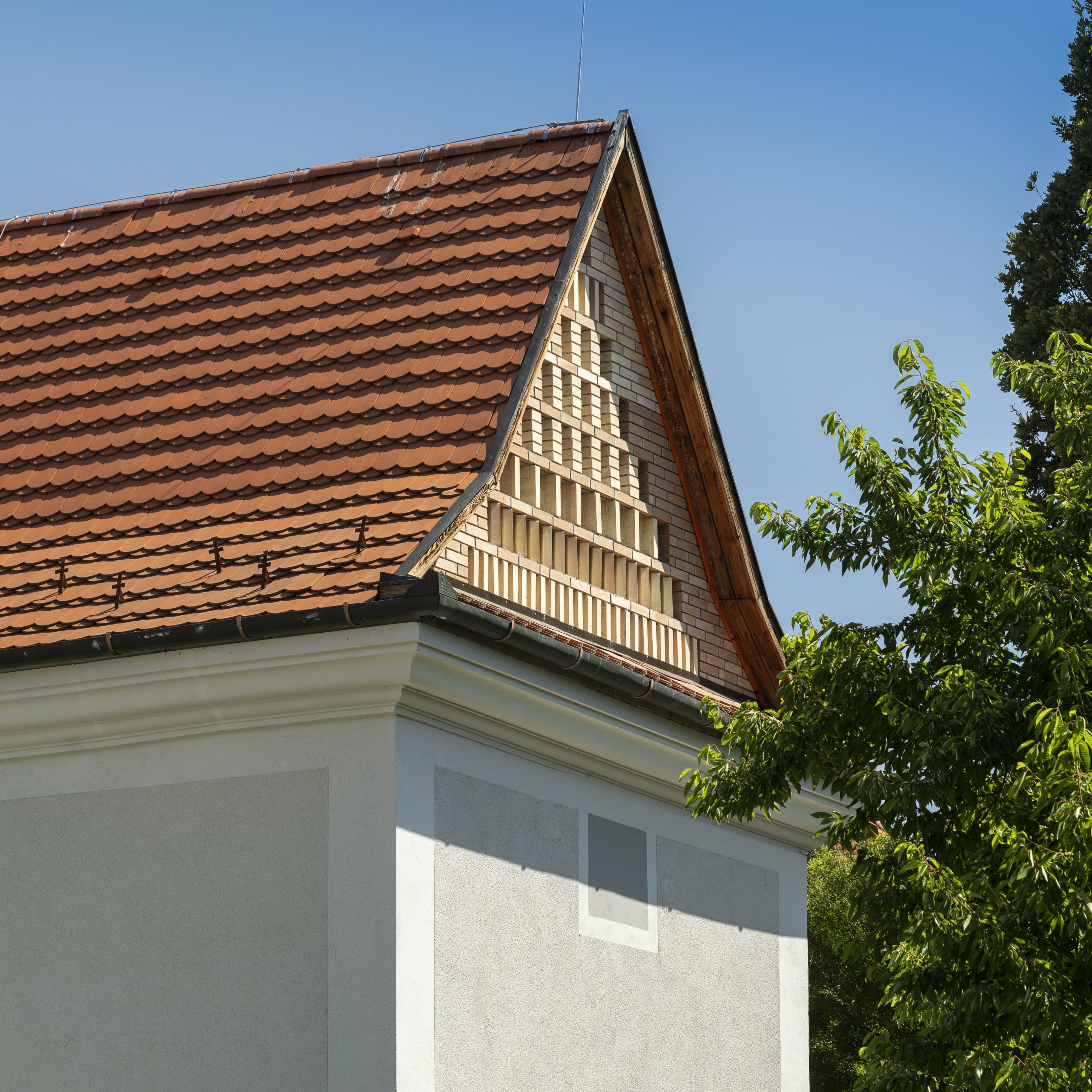 A zsűri szerint a timpanonos záródású, igényesen kialakított tégla oromfal igazi ritkaságnak számít ebben a zárt formavilágban.