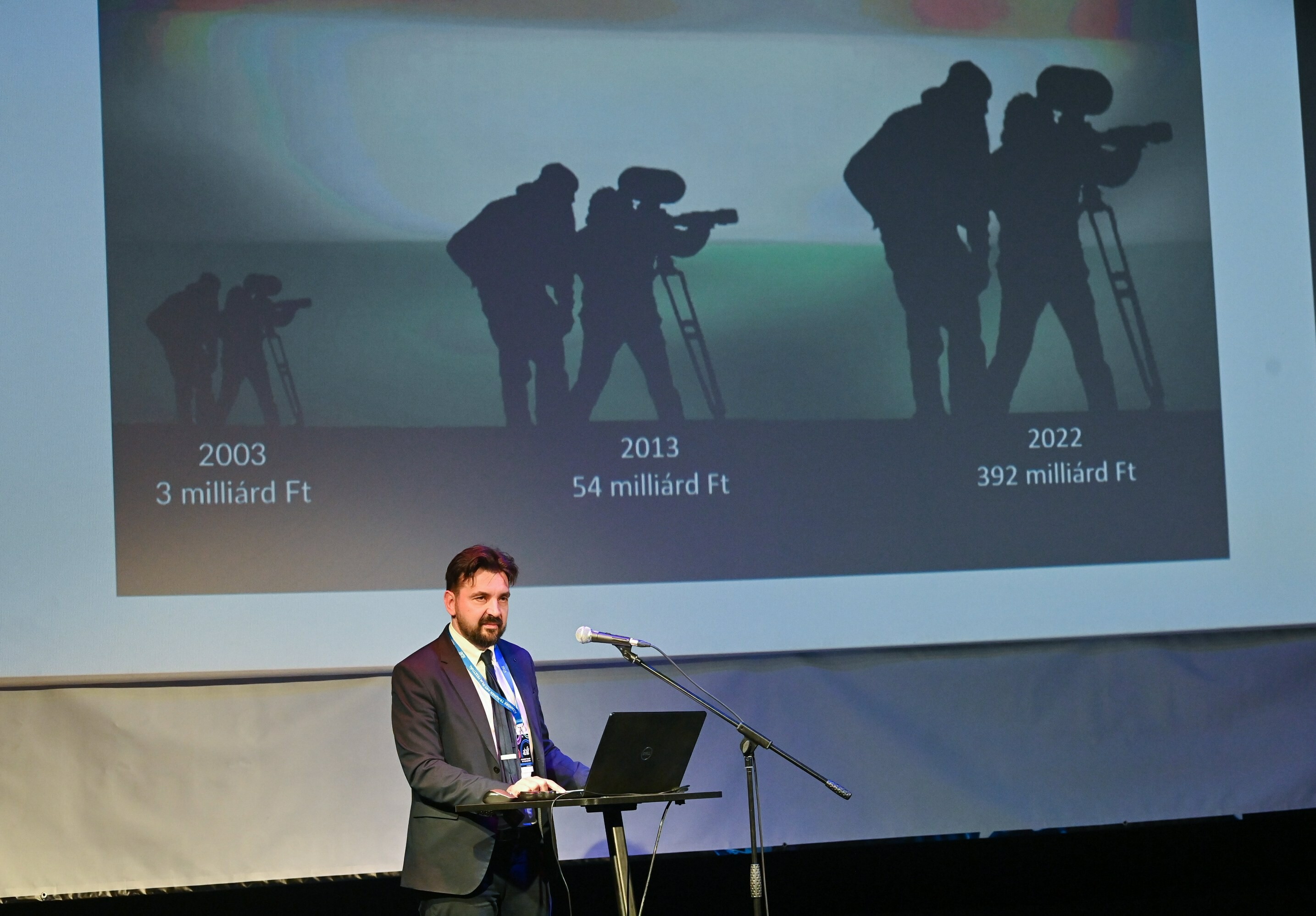 Kollarik Tamás, a konferencia elnöke és moderátora kiemelte: 2003-ban a magyar audovizuális ipar teljesítménye 3 milliárd forint volt, mely 2022-re megközelítette a 400 milliárd forintot. Ebből is leszűrhető, hogy Magyarországon nemcsak a filmgyártás, de a filmipari tevékenység is aktívan működik - fogalmazott. Szavai szerint Budapest és Magyarország ma a kontinentális Európa egyik legjelentősebb filmgyártó bázisa és kapacitása, amit nem az ország lakosságszáma, hanem a honi szabályozó és támogatási rendszer, továbbá az iparág mögött álló tehetség tesz lehetővé.
