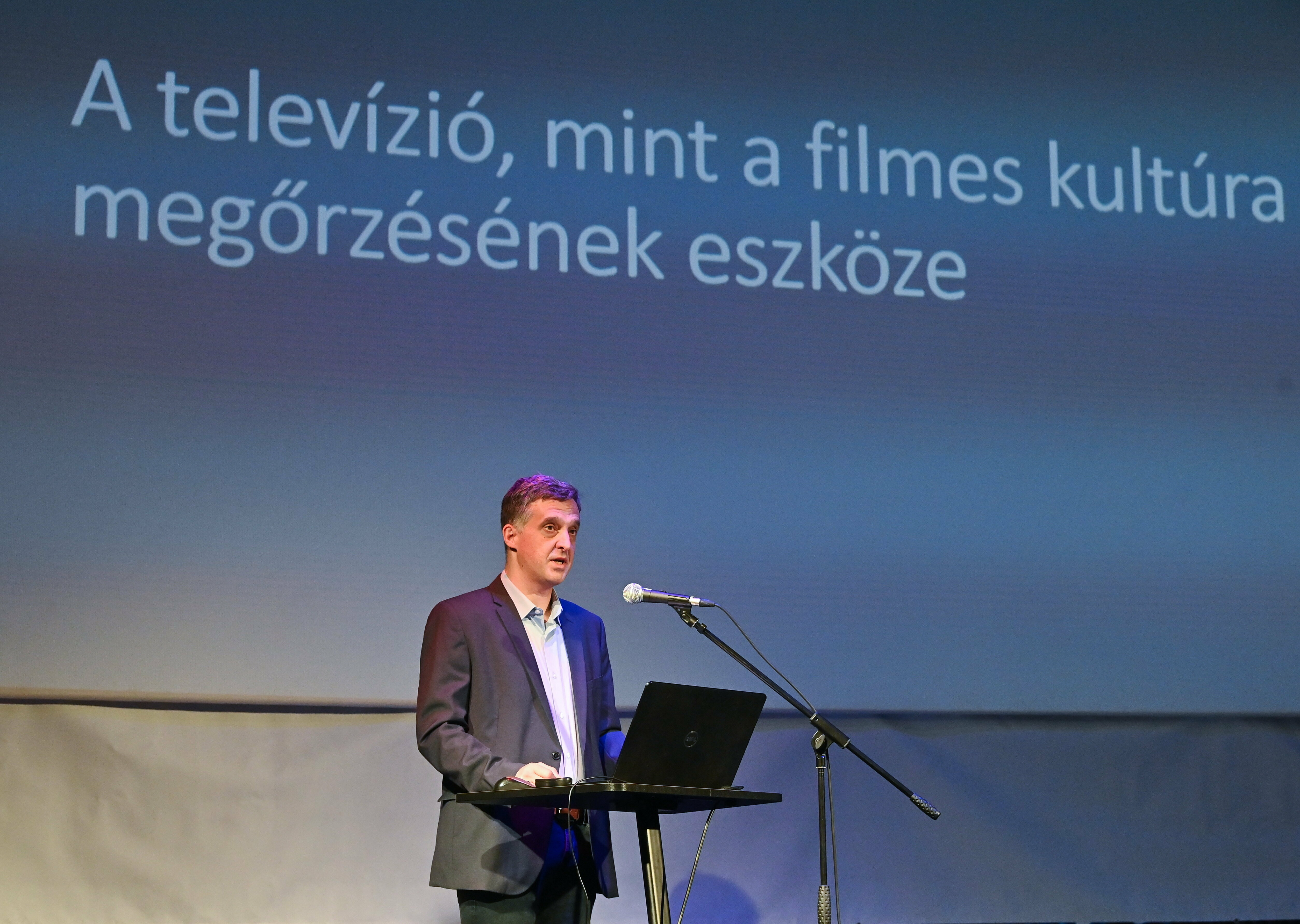 Galambos István, az NMHH kutatási igazgatóhelyettese A televízió mint a filmes kultúra megőrzésének eszköze című előadásában arról beszélt, hogy a mozik, a televízió és a streamingszolgáltatók összehasonlításából kitűnik: az emberek a televízióban nézik a legtöbb filmet, a magyar gyártású alkotások "otthona" ezen belül is a közmédia.
