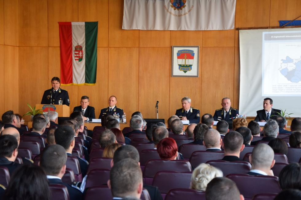 Dr. Urbán Zoltán rendőr ezredes köszönetét fejezte ki az állomány tagjainak a 2015. évben végzett tevékenységükért, helytállásukért és ismertette 2016. év célkitűzéseit, főbb feladatait.