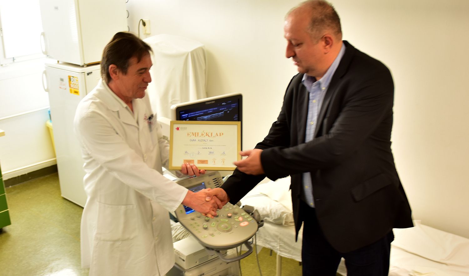Április közepén teljesítette a Duna Aszfalt a Bács-Kiskun Megyei Kórház kérését, melyben egy ultrahang-diagnosztikai eszköz vásárlásához járult hozzá nagymértékben a Neurológiai és Stroke Osztálya számára. A hordozható eszköz várhatóan évente legalább 4.000 beteg vizsgálatát teszi majd lehetővé, fontos szerepe lesz a stroke betegség korai felismerésében, a betegek monitorozásában, illetve a prevencióban is. A betegség diagnosztizálása a készülékkel biztosabbá és gyorsabbá válik. A vállalat adománya egy jól átgondolt és célzott támogatási terv része, amely a jövőben is sokak számára biztosíthat reményt és lehetőséget.