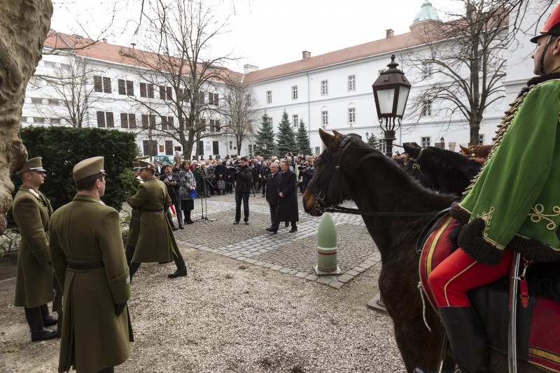 A jubileumi rendezvény koszorúzással kezdődött a HM Hadtörténeti Intézet és Múzeum díszudvarán, ahol katonai tiszteletadással emlékeztek meg a jász katonai ősökről.
